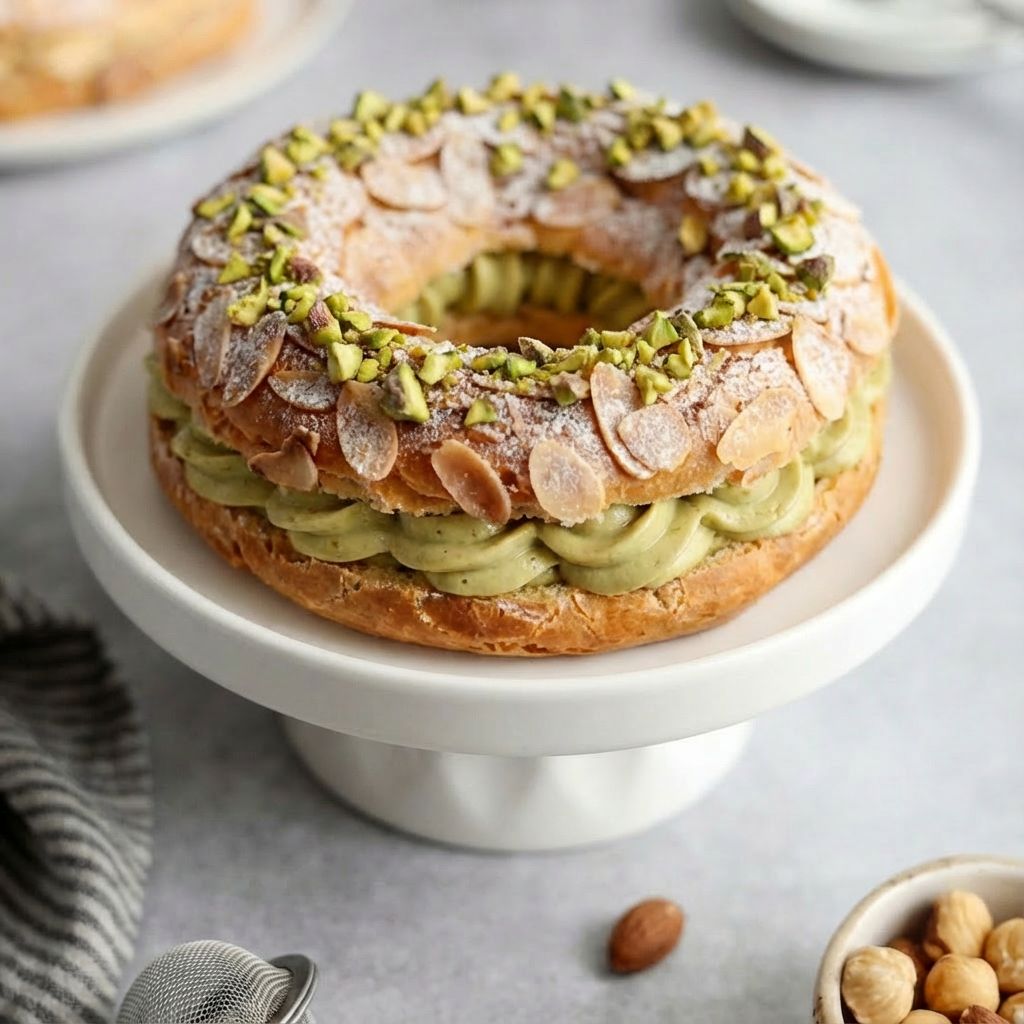 En su interior encontramos una crema de pistacho y mascarpone, suave y aireada; un praliné de pistacho que aporta profundidad y carácter; y un crumble de pistacho que añade el toque crujiente.
